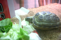 | お店でカメチェック。値段や、どんなカメがいるか、ペット屋などをチェックする。その中で、これは飼えるかもって思ったのが『ロシア陸がめ』。値段が安くて、なかなかかわいい。 |